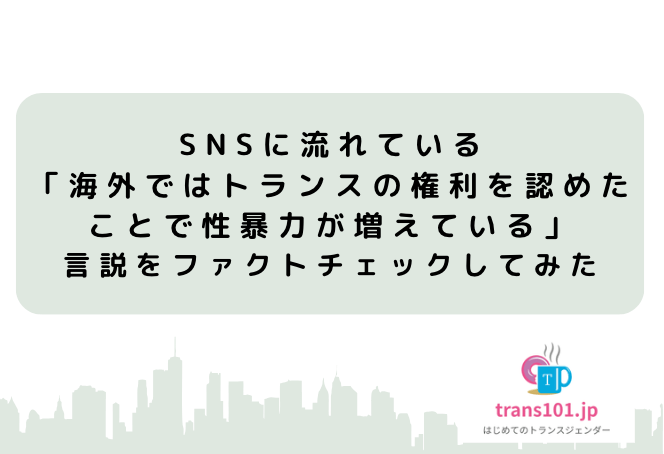 「トランスジェンダーの運動により性暴力がたくさん起きている」とする主張や「トランスジェンダーがこんな性加害を行った」と英語文献を紹介することで性暴力が増えているかのように印象づけるものなど、SNSで見かけることがあります。